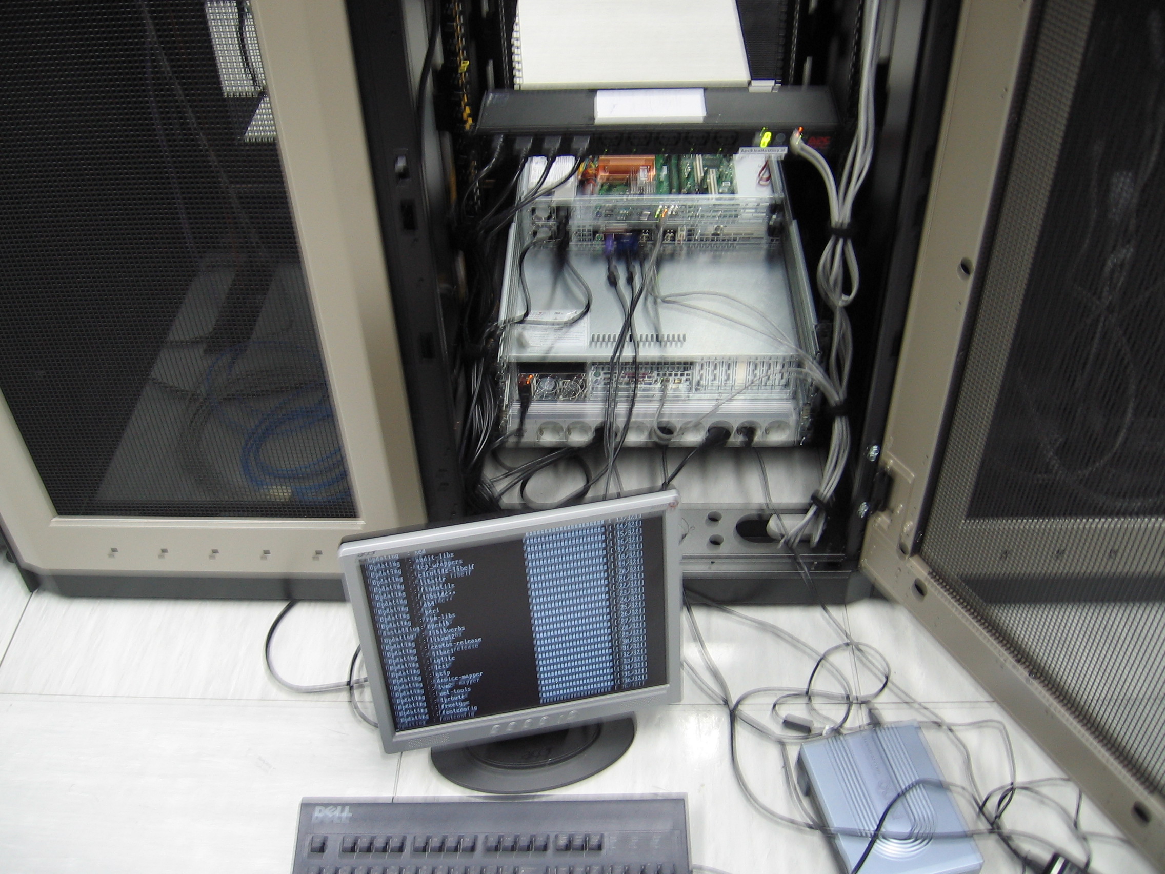 De eerste server online in het nieuwe rack